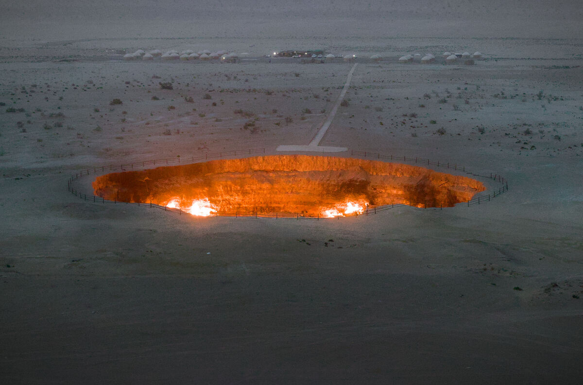 Properly known as the Darvaza Gas Crater, it is around 70m across, 30m deep and sits about 260km due north of the capital city of Ashgabat.
